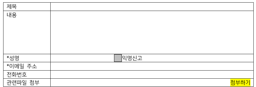 임직원의 불공정한 업무처리 및 부정행위에 대한 상담 및 제보접수를 위해 아래와 같이 개인정보를 수집하고 있습니다. (익명 제보는 회사의 윤리적 가치를 유지하기 위한 목적으로 운영되며, 제보의 처리 및 회신을 위한 최소한의 정보인 이메일 주소만 수집하고 있습니다.)